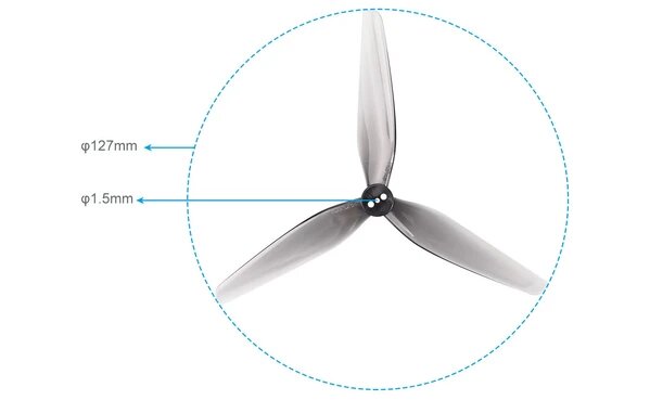 Voici enfin des hélices 5 pouces pour axe moteur de 1.5 mm, montage connu sous le nom de T-mount.