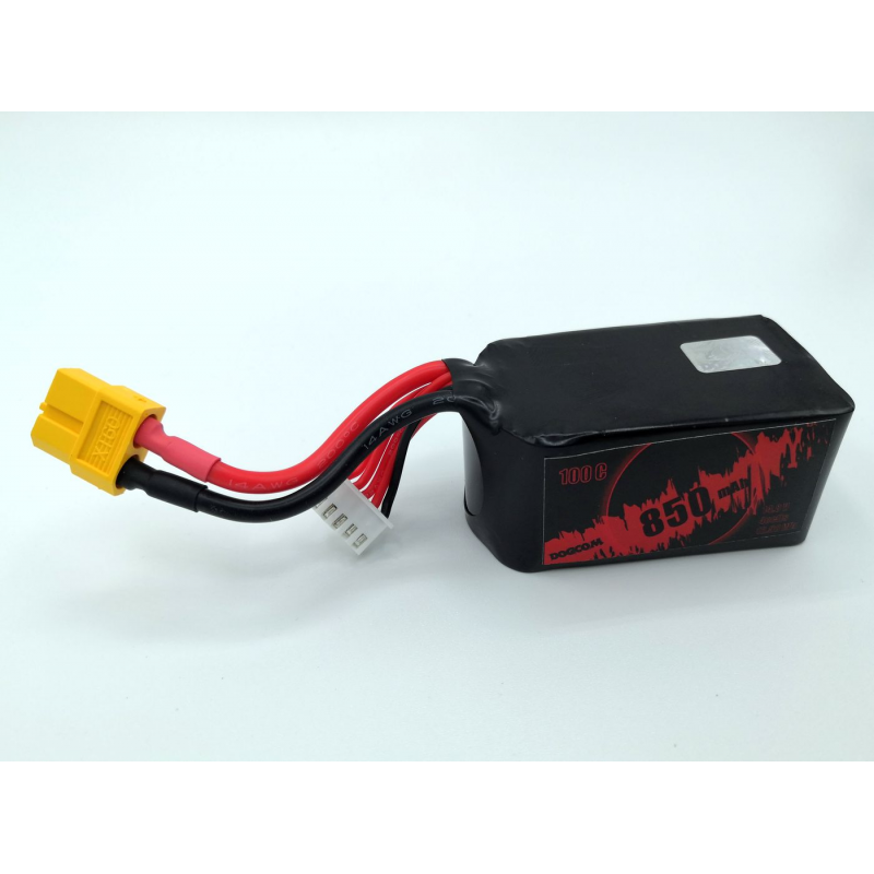Nous avons sélectionné ce pack LiPo 850 mAh en 4S en 100C, le plus compact et léger du marché dans sa catégorie.
