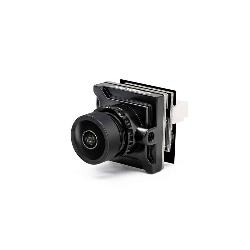 Commutable en 4/3 ou en 16/9ème pour convenir à tout le monde et offrant un champs de vision à 165°, cette CaddX ne pèse que 4.1 g dans son boitier au format 14 mm x 14 mm.