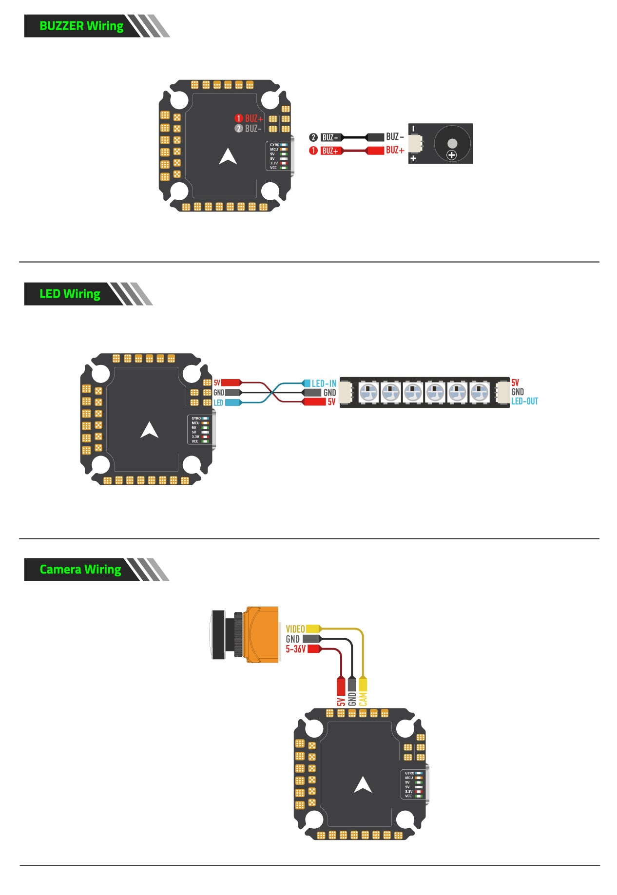 BEC : 3.3V 0.5A, 5V 2.5A, 9V 2A