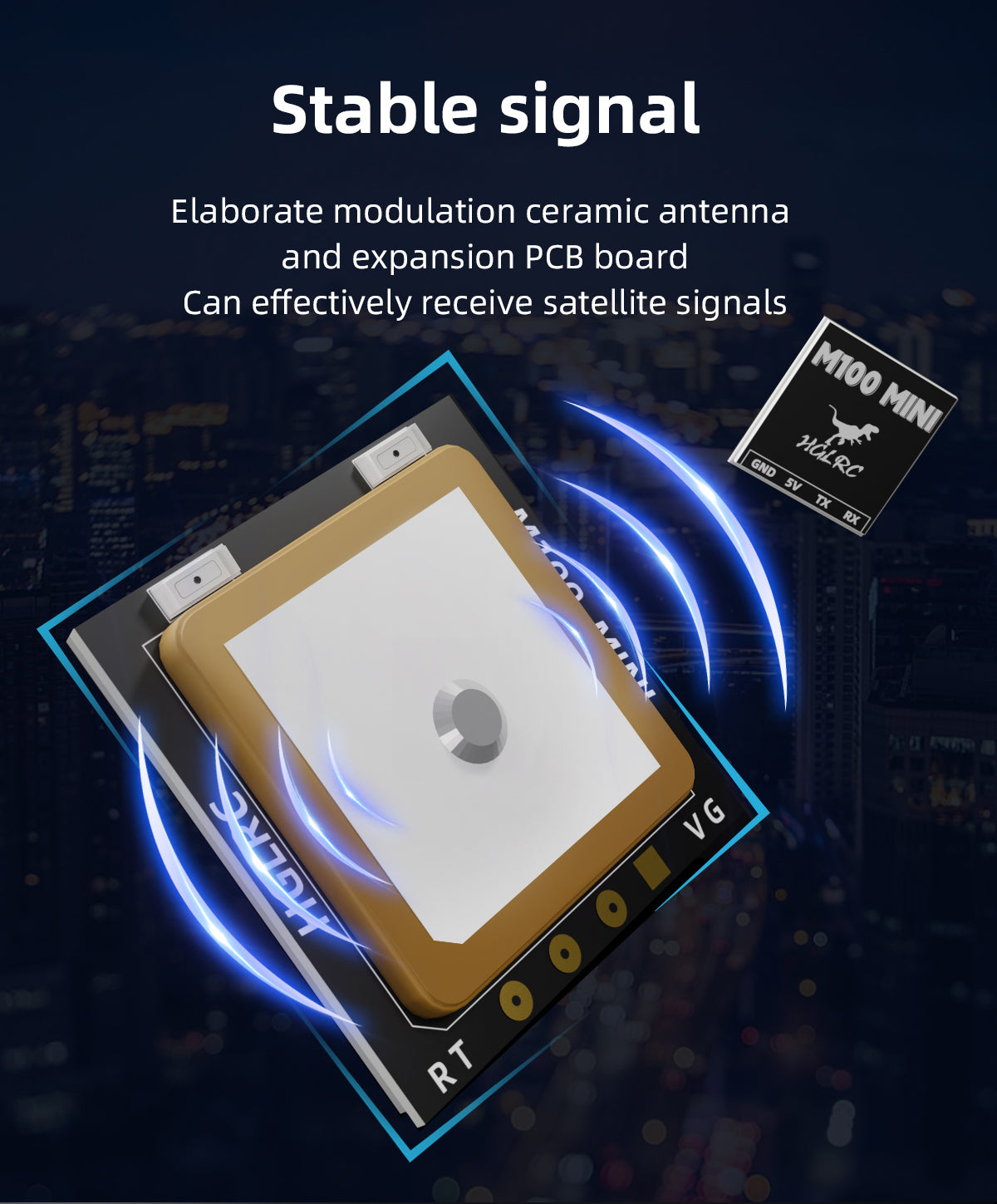 Son antenne en céramique intégrée permet un taux de rafraîchissement de 1Hz à 10Hz et une vitesse de communication de 115200 bps.