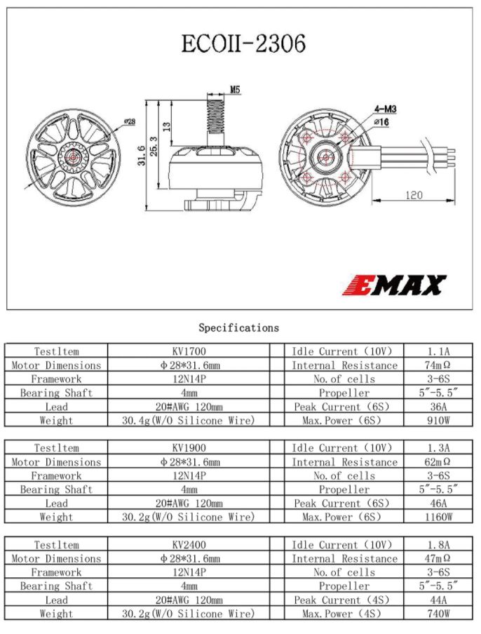 Un max de sérieux pour ces moteur 2306 Emax ECO II fraichement arrivés sur le marché.