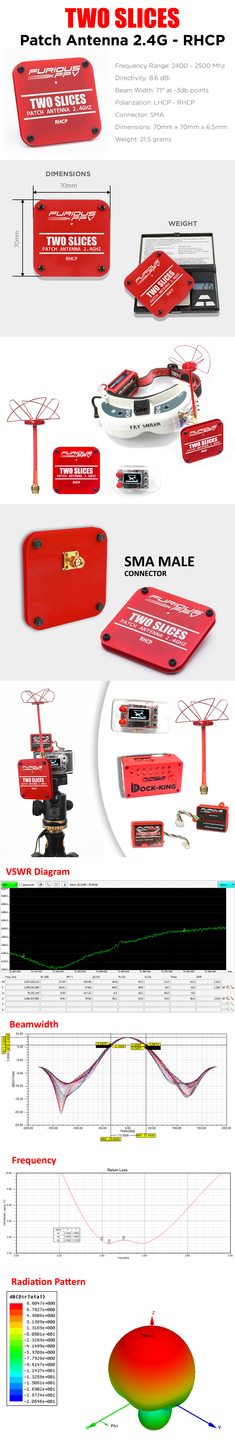 Antenne patch "Two slices" pour le FPV Long Range en 2.4 GHz par Furious FPV.