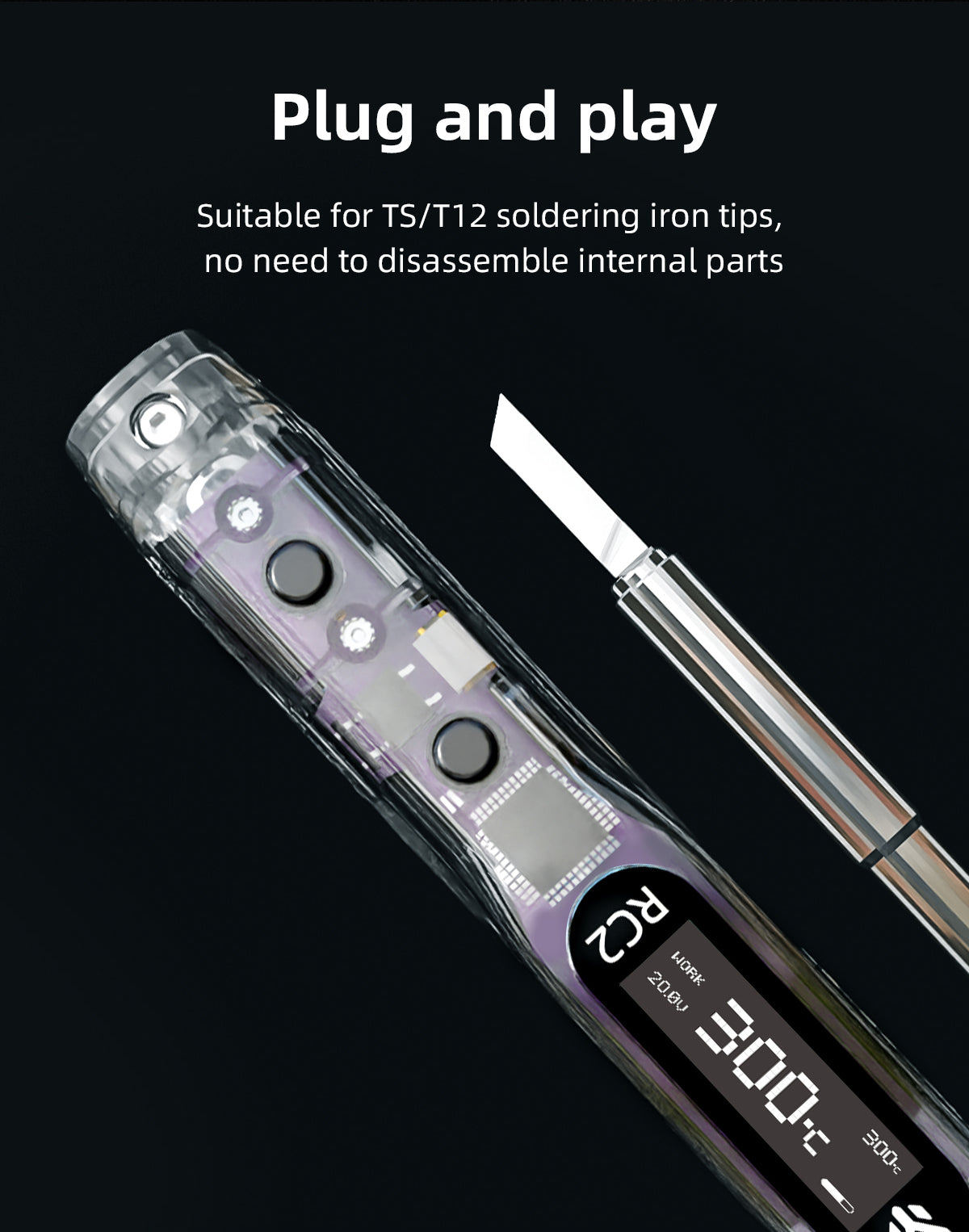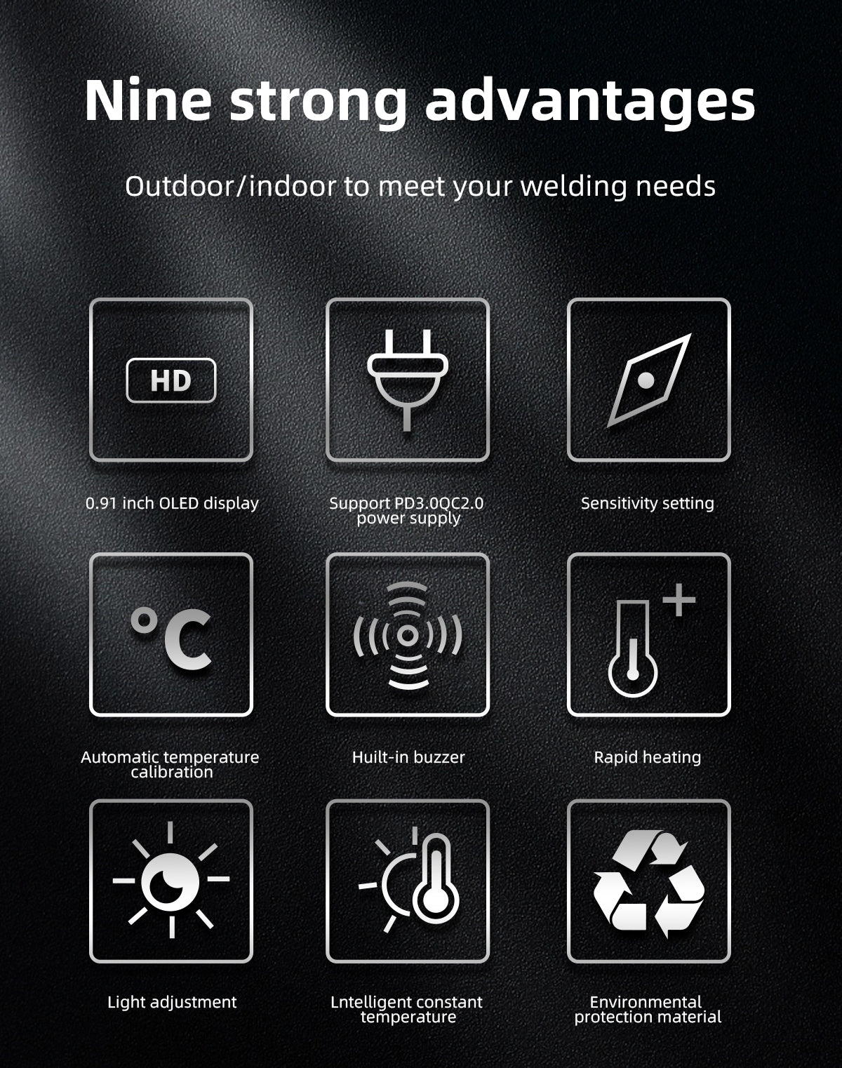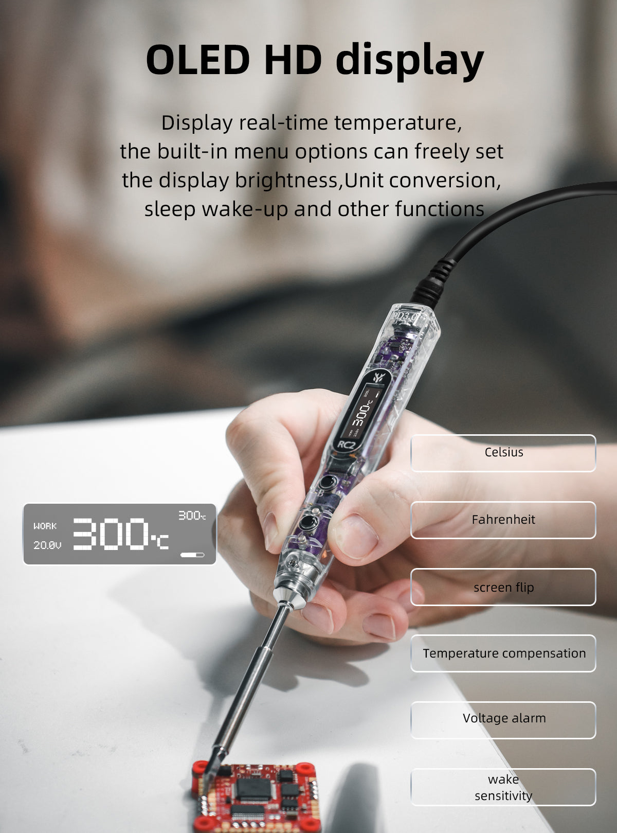 Affichage et réglage de la température par menu et écran OLED, il lui suffit de quelques secondes pour monter à 300°.
