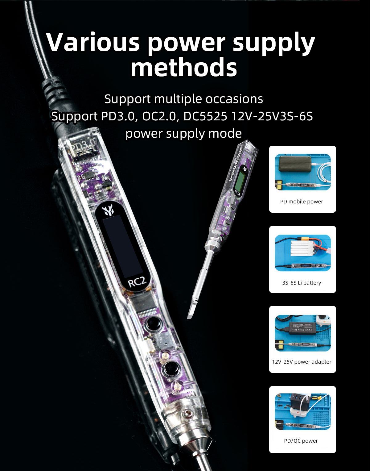 Alimentation : PD3.0, QC2.0, DC12-25V, 3S-6S