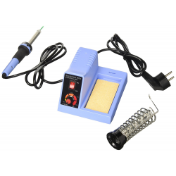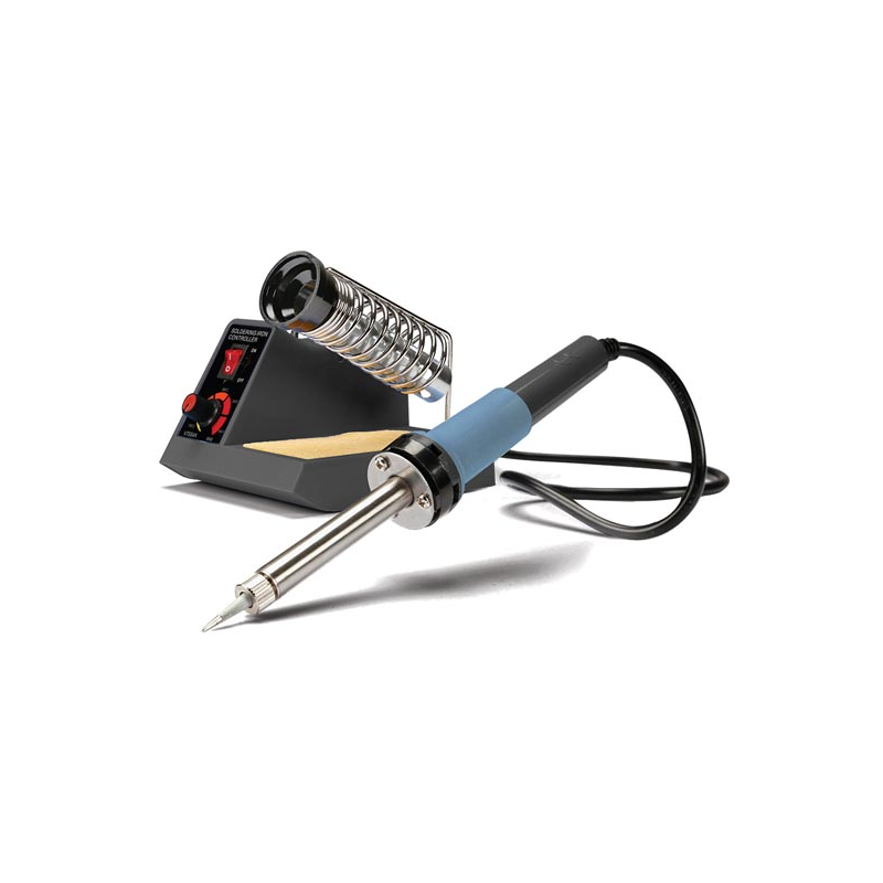 Station de soudure réglable de 150° à 450° C par potentiomètre gradué.