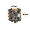 Le gyro MPU6000 est associé à un baromètre BMP280, un port I2C, une blackbox de 8 Mo, ainsi que 2 BECs (5V et 9V).