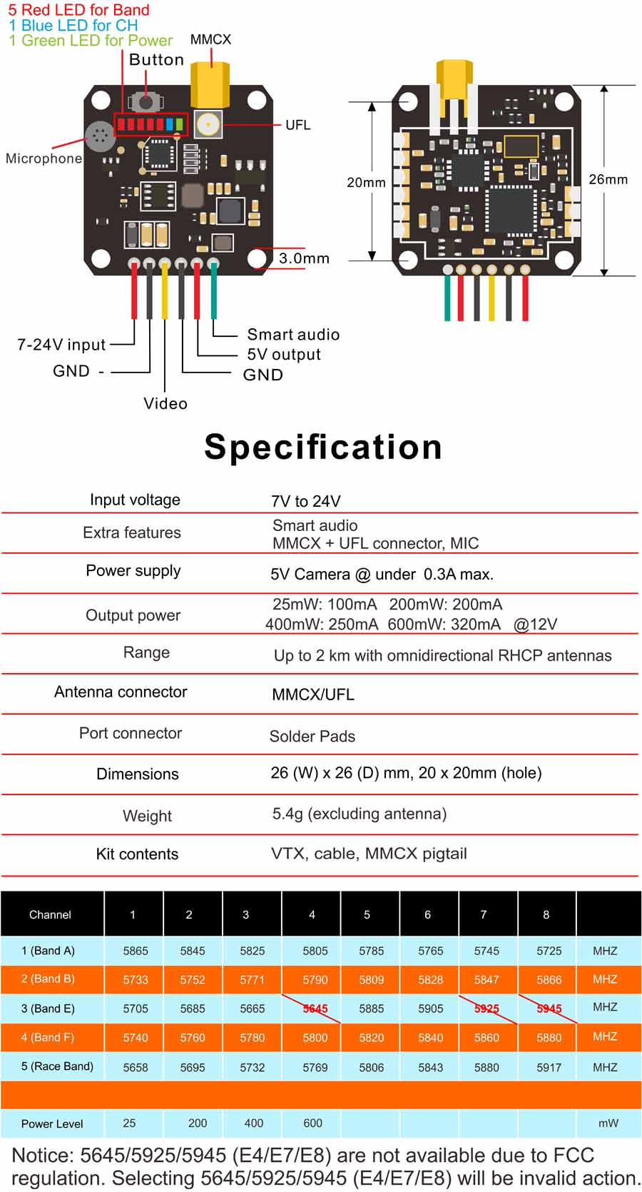 Avec une puissance réglable de 25 à 600 mW, le FX3-ultimate dispose d'un connecteur UFL ET d'un connecteur MMCX pour votre antenne.